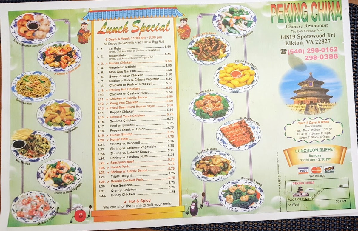 Welcome to Peking China Restaurant, a hidden gem located in Elkton, VA, where authentic Chinese cuisine meets exceptional service. This eatery is a culinary delight that promises fresh, flavorful dishes straight from the kitchen, as attested by satisfied patrons.